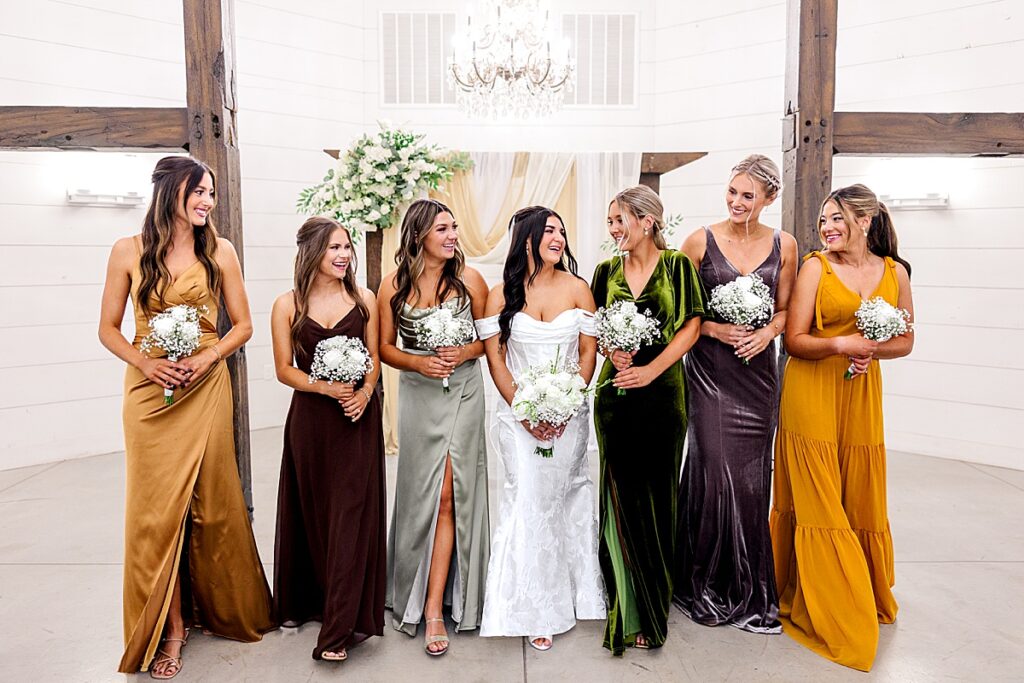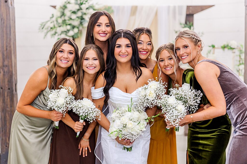 Every detail of this wedding was thoughtfully chosen. Gold accents added warmth and sophistication, while bows and heirloom-inspired elements brought a romantic, timeless feel to the day. The bridesmaids wore a stunning mix of colors and textures that complemented the season perfectly and photographed beautifully in natural light.